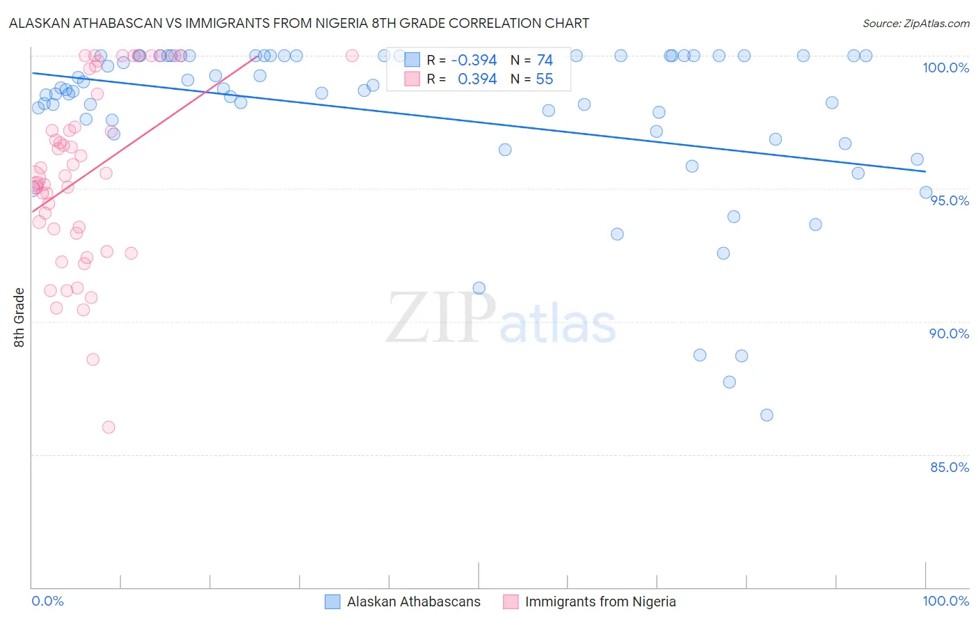 Alaskan Athabascan vs Immigrants from Nigeria 8th Grade Correlation Chart
