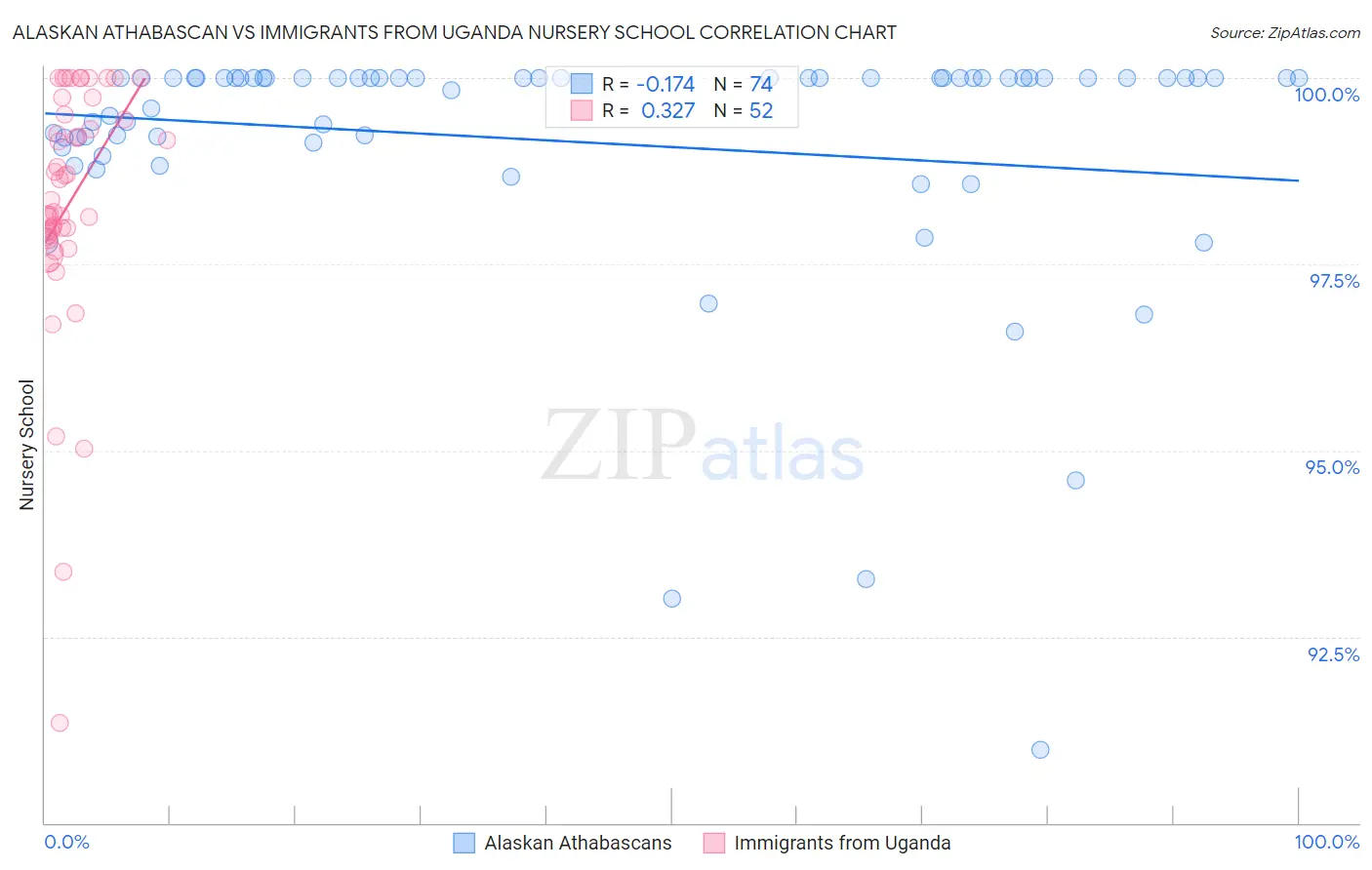 Alaskan Athabascan vs Immigrants from Uganda Nursery School Correlation Chart