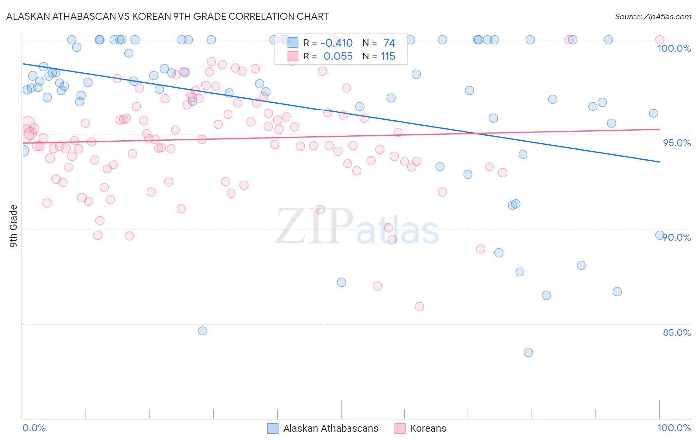 Alaskan Athabascan vs Korean 9th Grade Correlation Chart