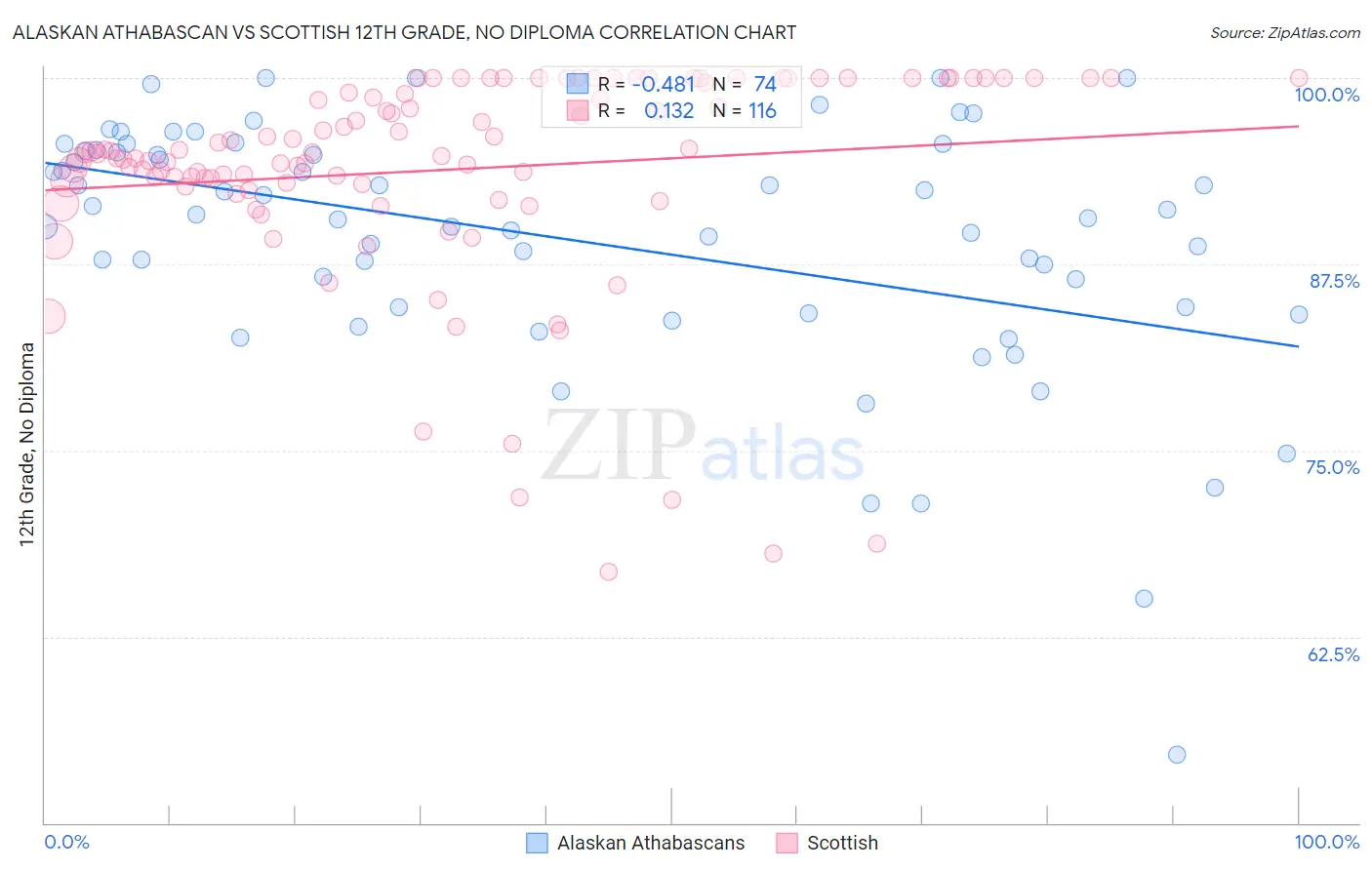 Alaskan Athabascan vs Scottish 12th Grade, No Diploma Correlation Chart