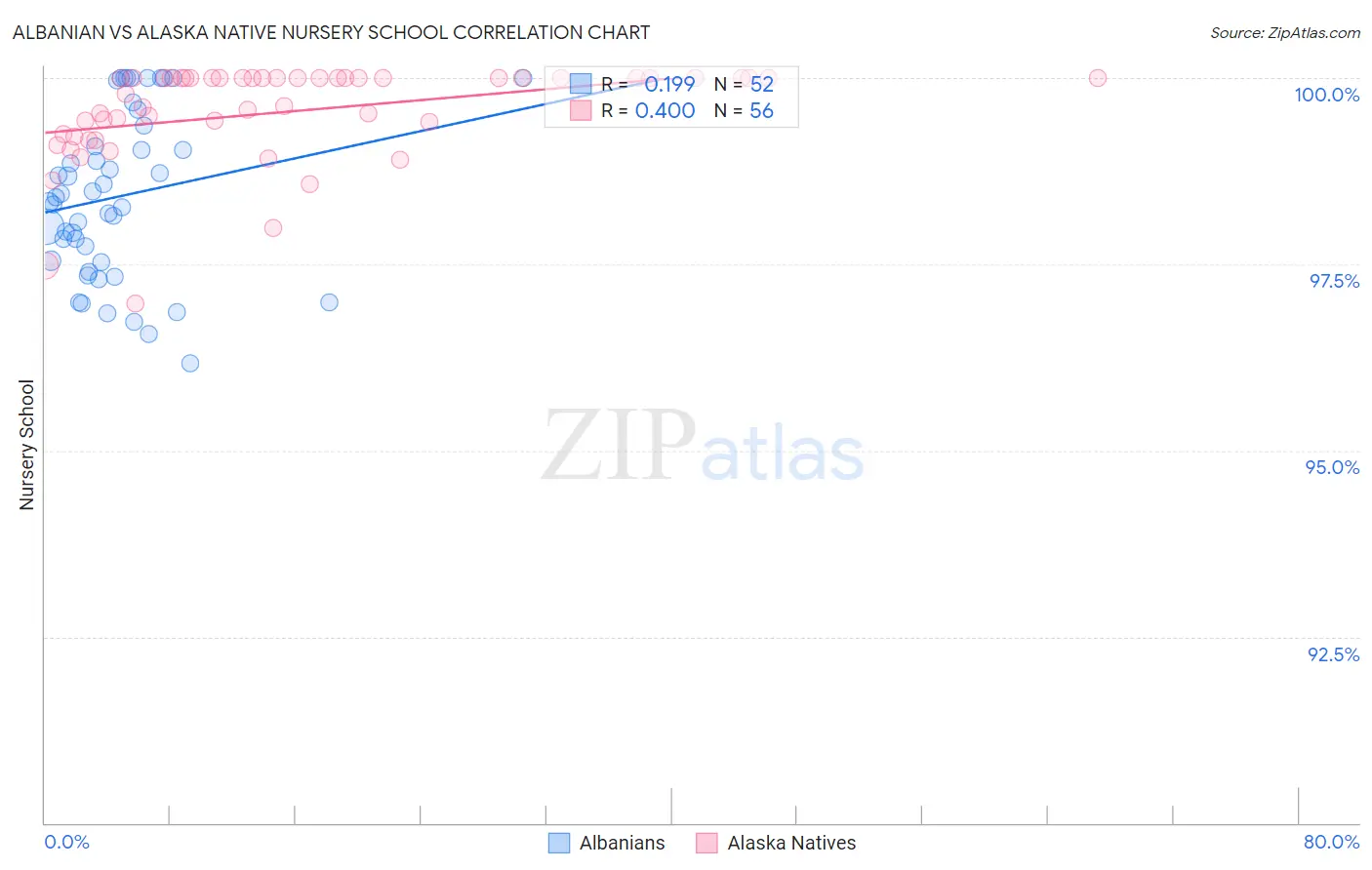 Albanian vs Alaska Native Nursery School Correlation Chart