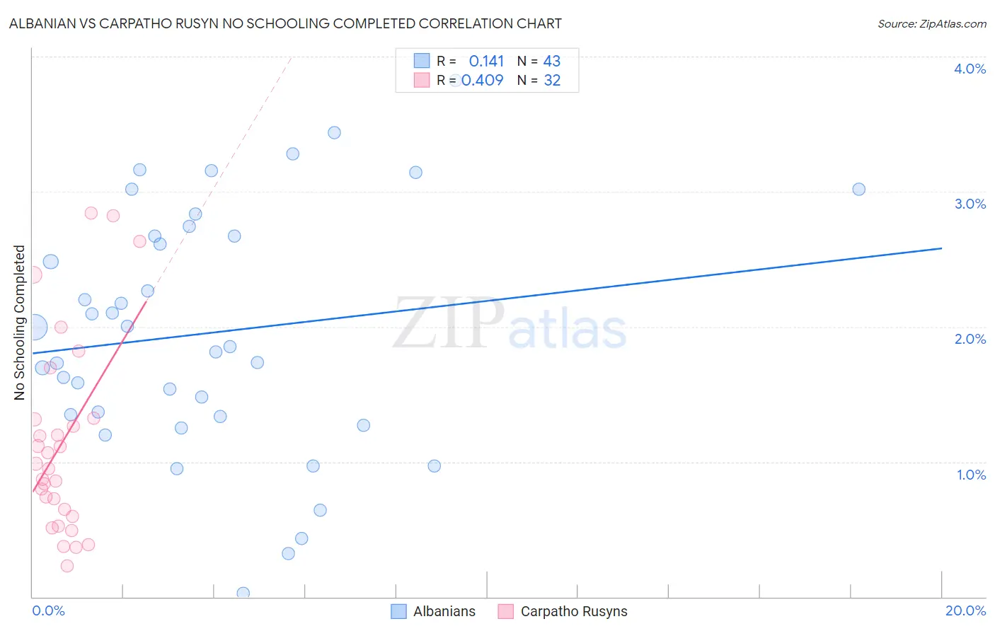 Albanian vs Carpatho Rusyn No Schooling Completed Correlation Chart