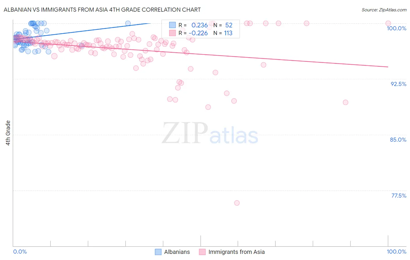 Albanian vs Immigrants from Asia 4th Grade Correlation Chart