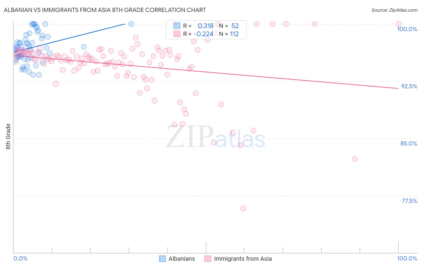 Albanian vs Immigrants from Asia 8th Grade Correlation Chart