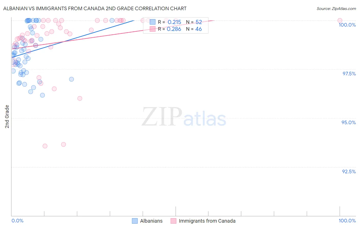 Albanian vs Immigrants from Canada 2nd Grade Correlation Chart