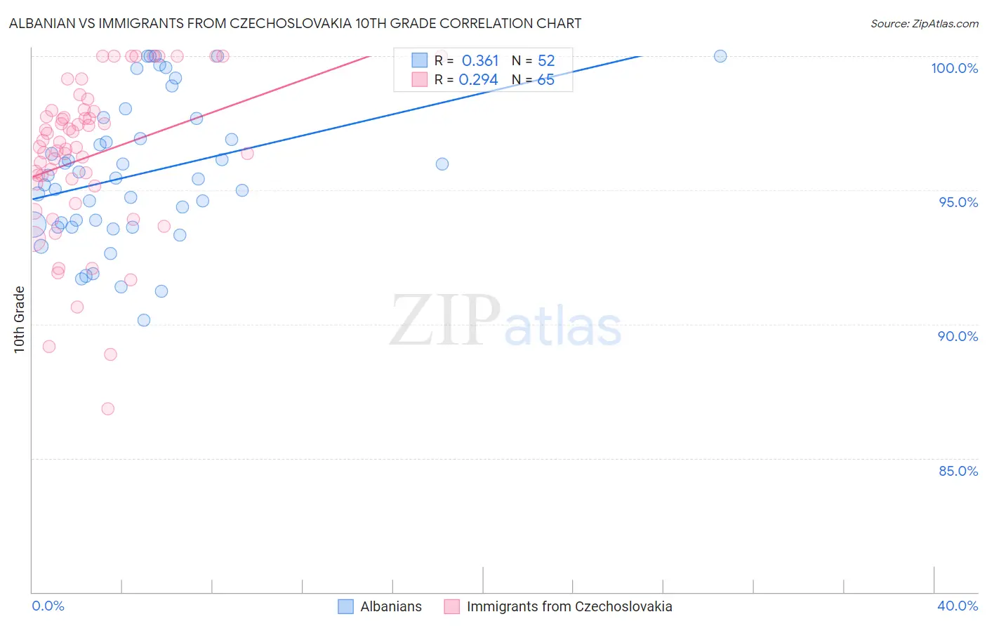 Albanian vs Immigrants from Czechoslovakia 10th Grade Correlation Chart
