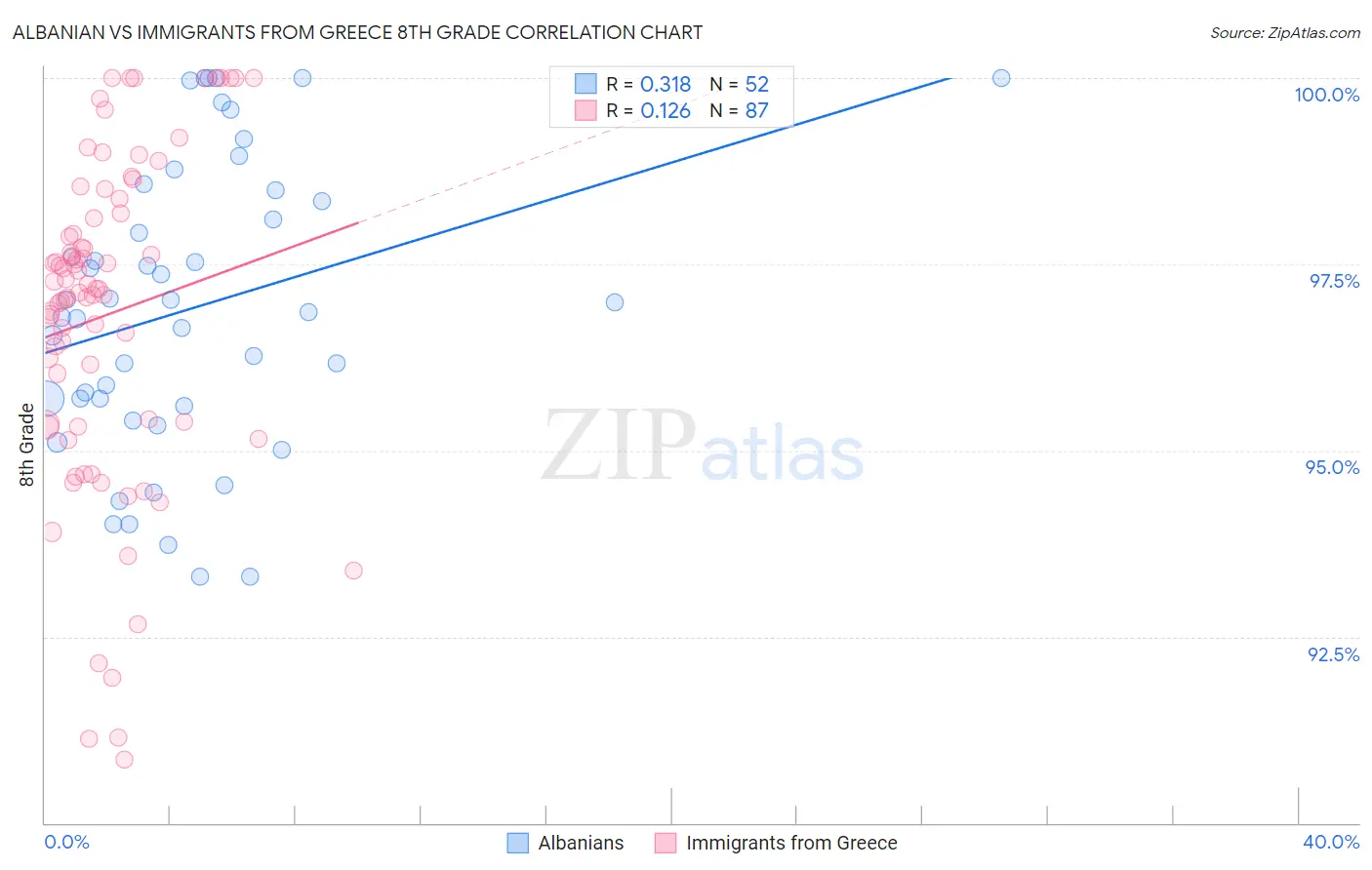 Albanian vs Immigrants from Greece 8th Grade Correlation Chart