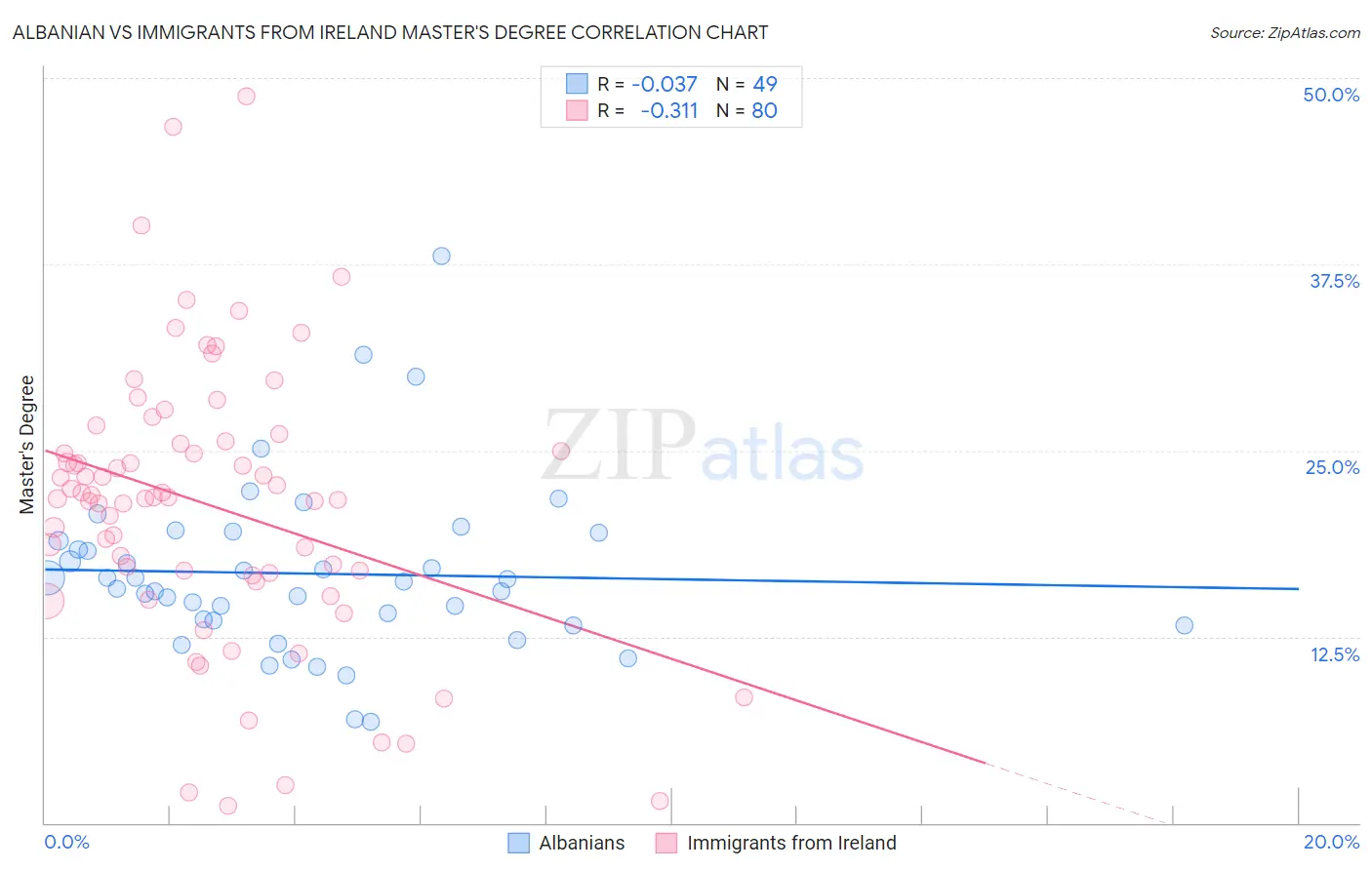 Albanian vs Immigrants from Ireland Master's Degree Correlation Chart