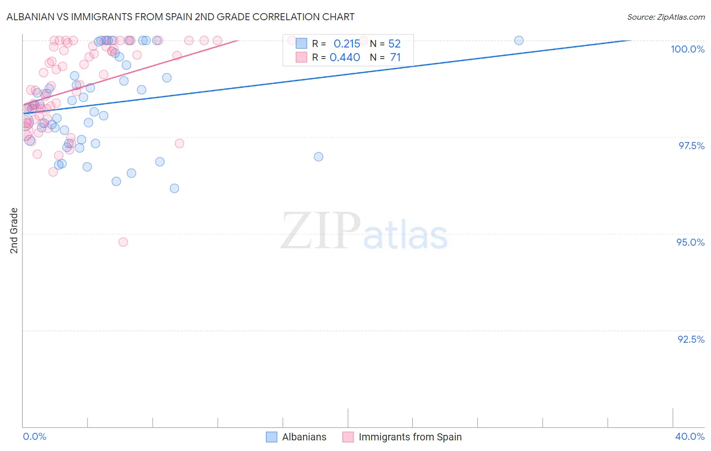 Albanian vs Immigrants from Spain 2nd Grade Correlation Chart