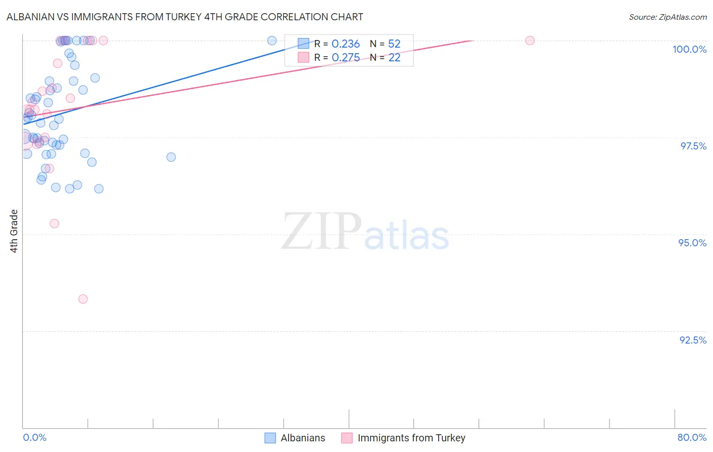 Albanian vs Immigrants from Turkey 4th Grade Correlation Chart