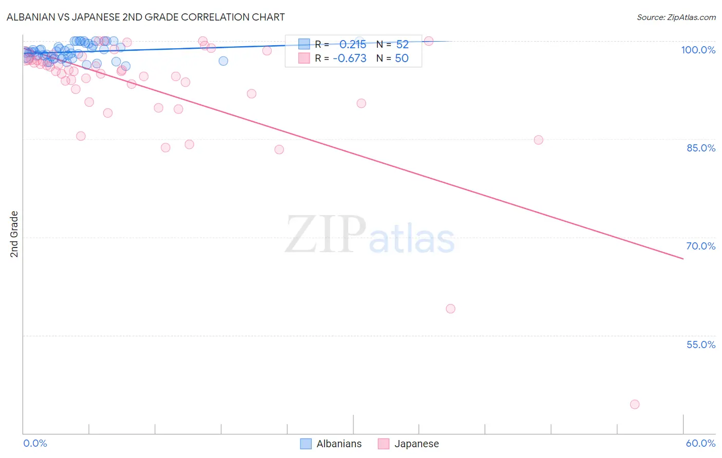Albanian vs Japanese 2nd Grade Correlation Chart