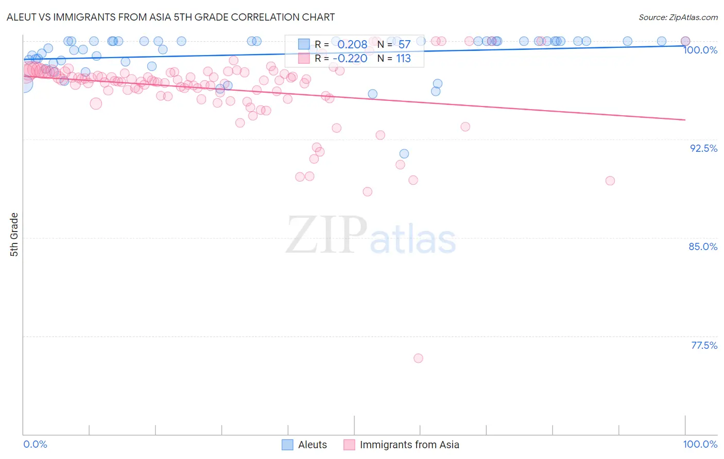 Aleut vs Immigrants from Asia 5th Grade Correlation Chart