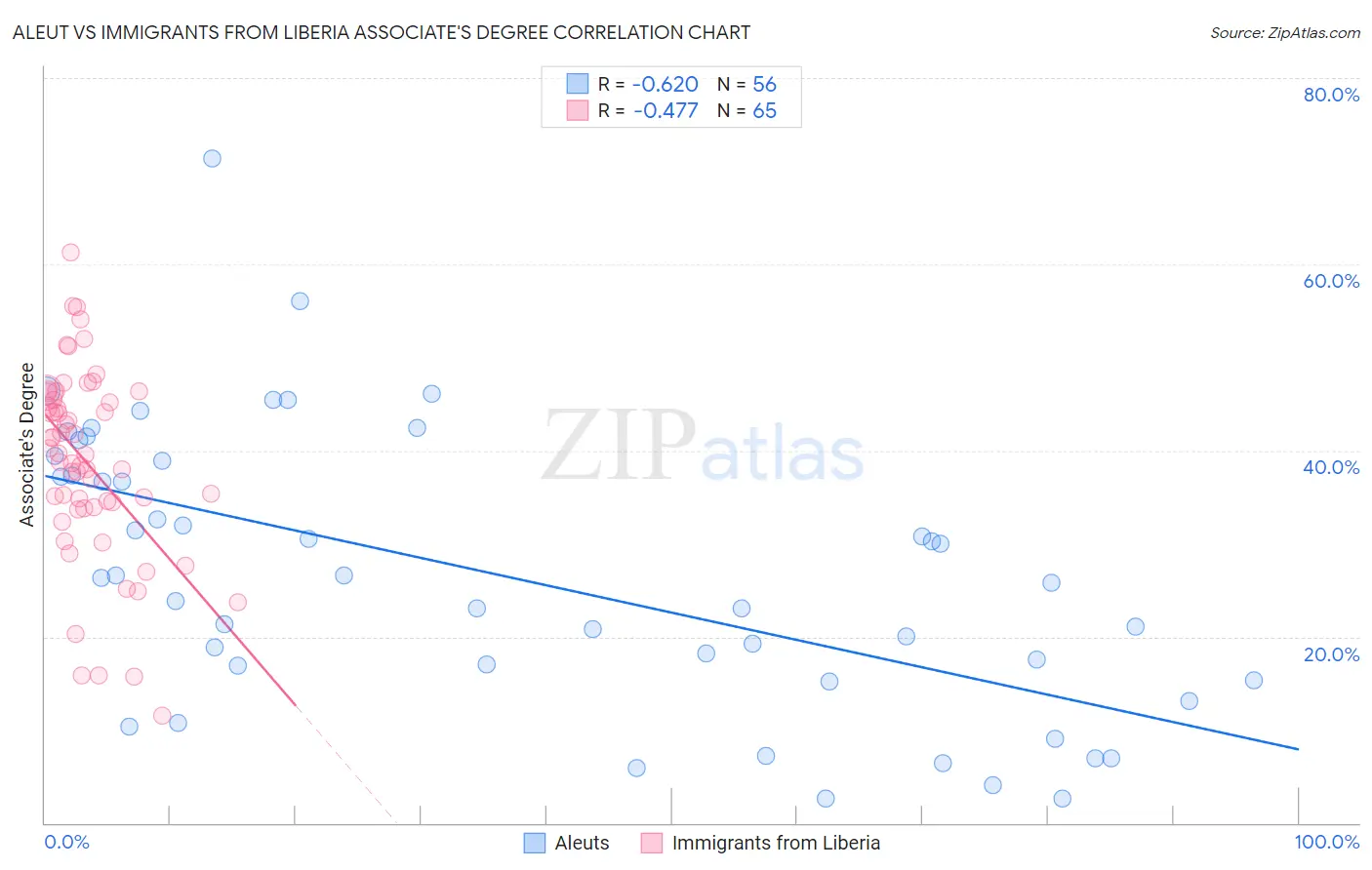 Aleut vs Immigrants from Liberia Associate's Degree Correlation Chart