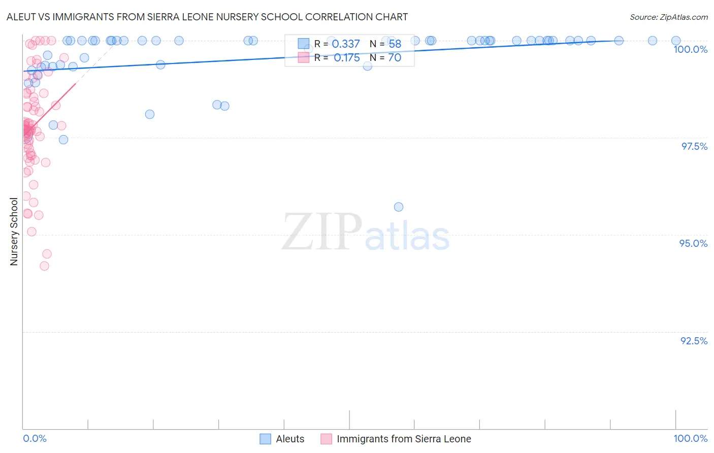 Aleut vs Immigrants from Sierra Leone Nursery School Correlation Chart