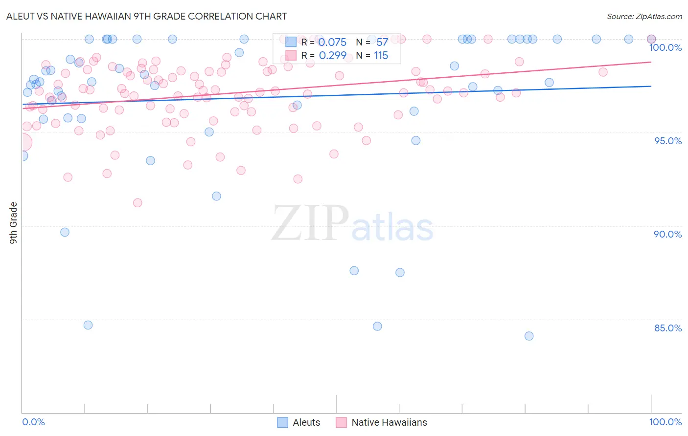 Aleut vs Native Hawaiian 9th Grade Correlation Chart