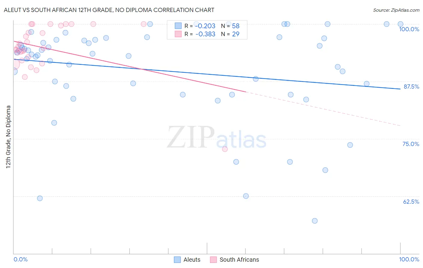 Aleut vs South African 12th Grade, No Diploma Correlation Chart