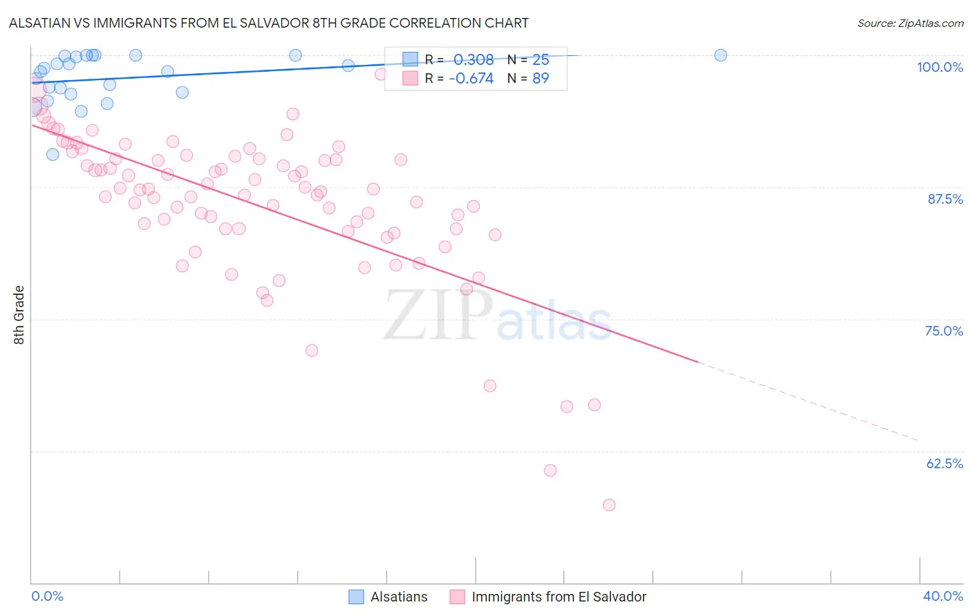 Alsatian vs Immigrants from El Salvador 8th Grade Correlation Chart