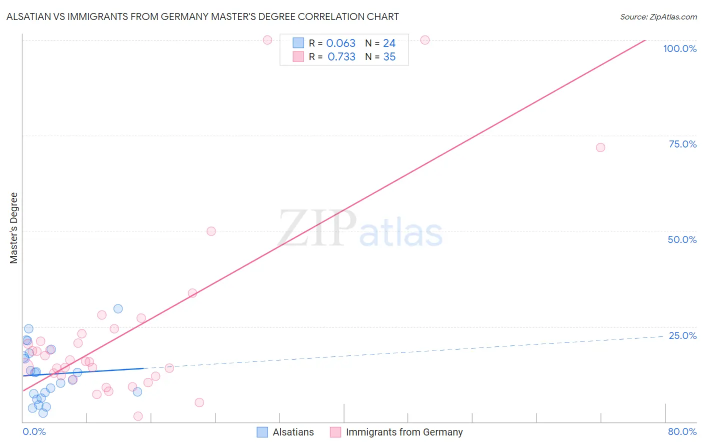 Alsatian vs Immigrants from Germany Master's Degree Correlation Chart