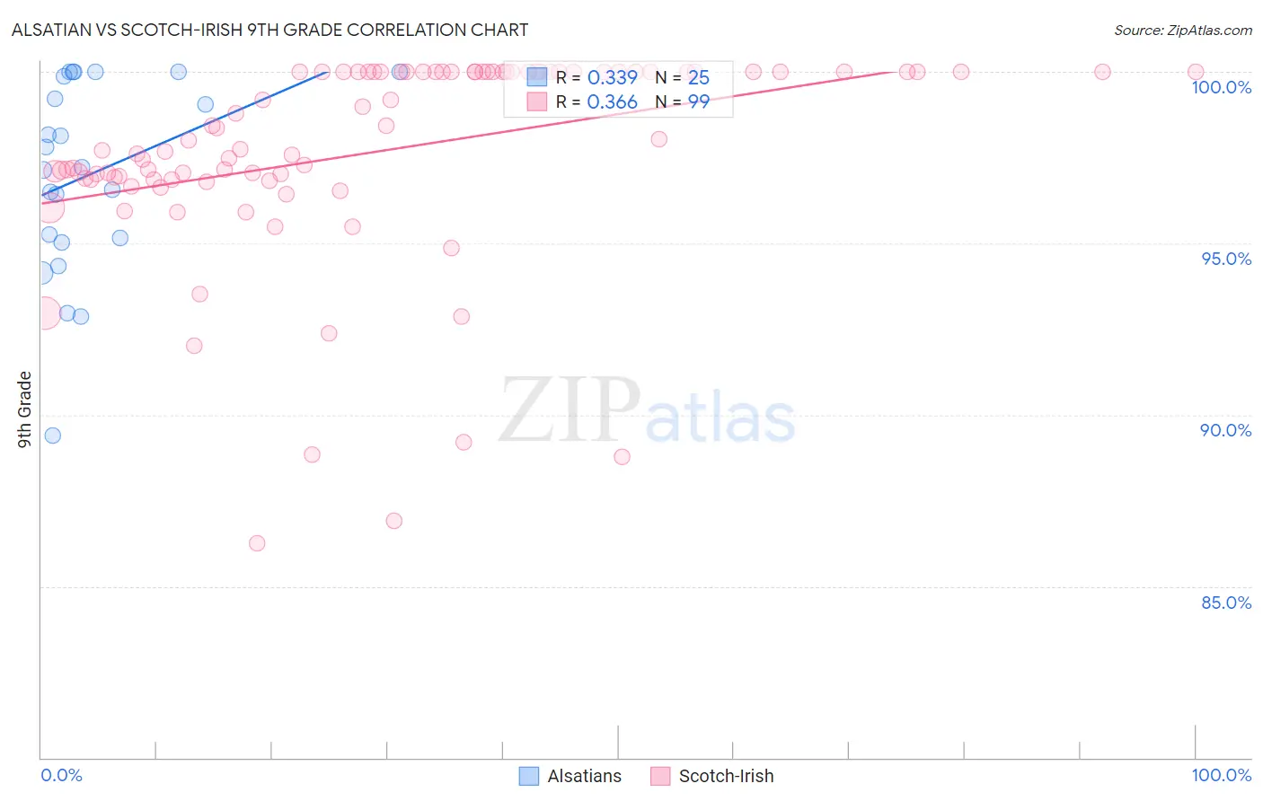 Alsatian vs Scotch-Irish 9th Grade Correlation Chart