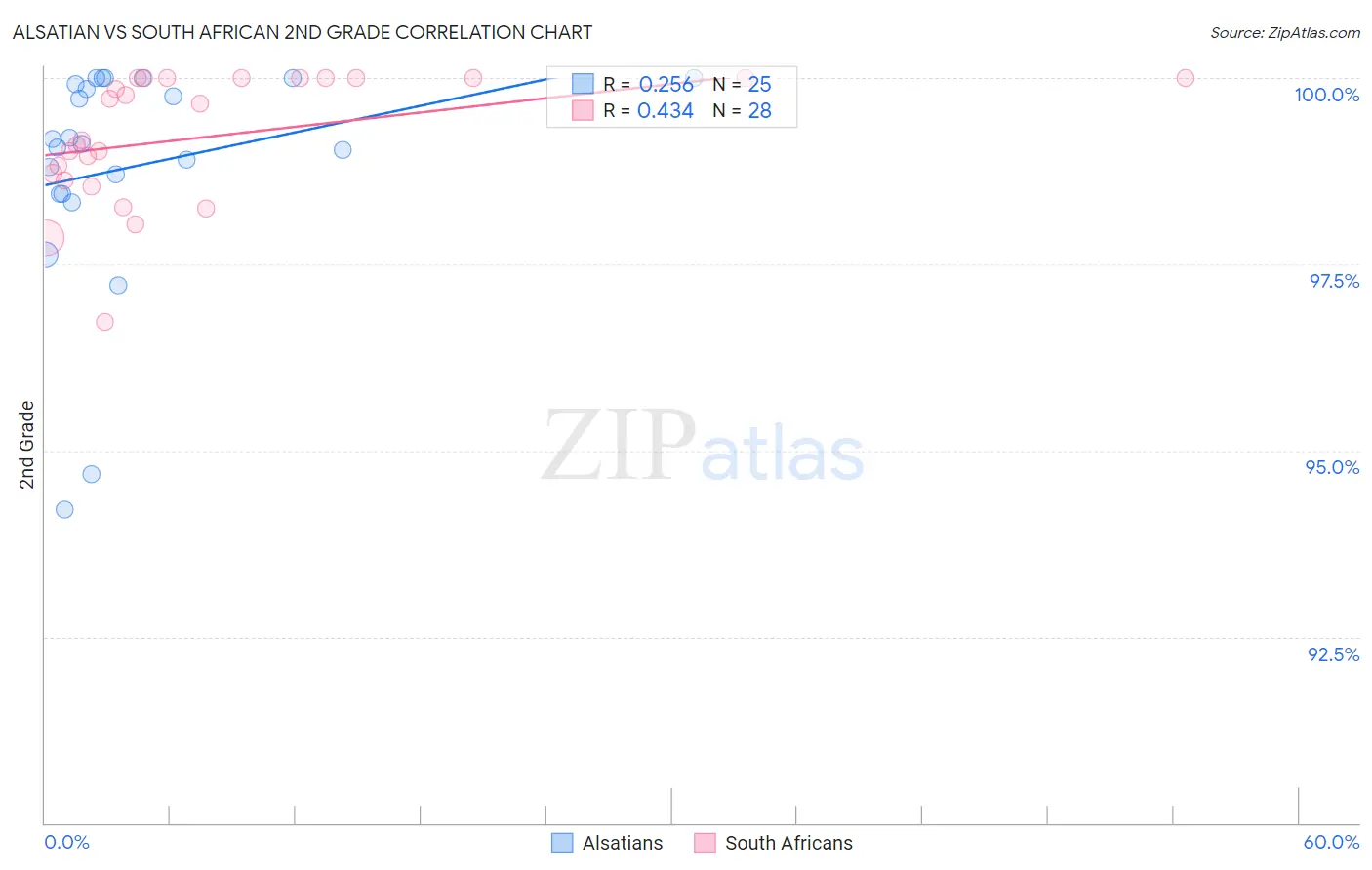 In terms of 2nd grade, the demographic groups most similar to South Africans are Immigrants from Germany (98.2%, a difference of 0.0%), Immigrants from India (98.2%, a difference of 0.010%), Cypriot (98.2%, a difference of 0.010%), Ukrainian (98.2%, a difference of 0.020%), and Zimbabwean (98.2%, a difference of 0.020%).