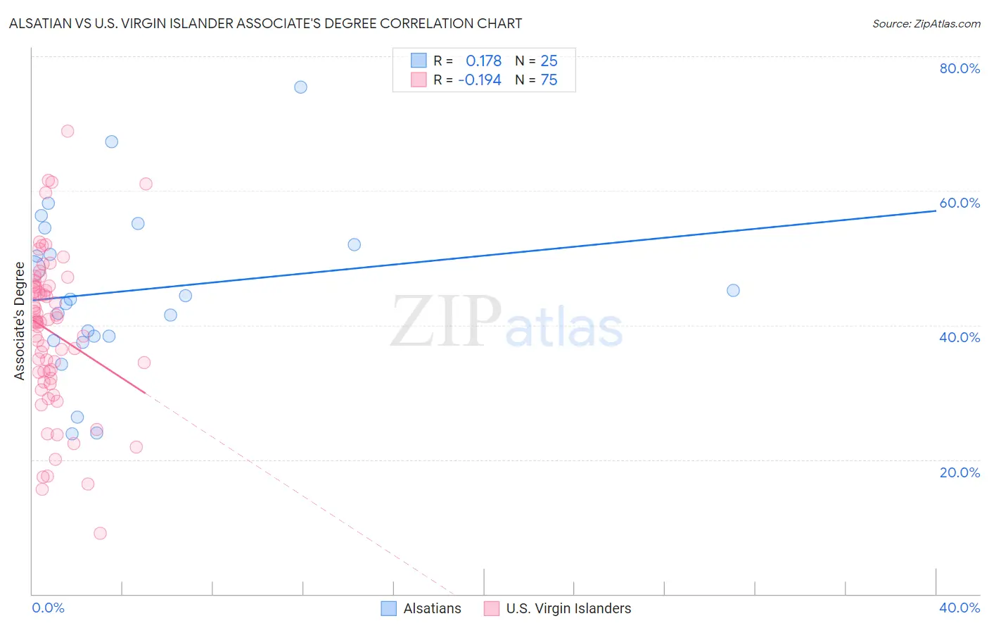 Alsatian vs U.S. Virgin Islander Associate's Degree