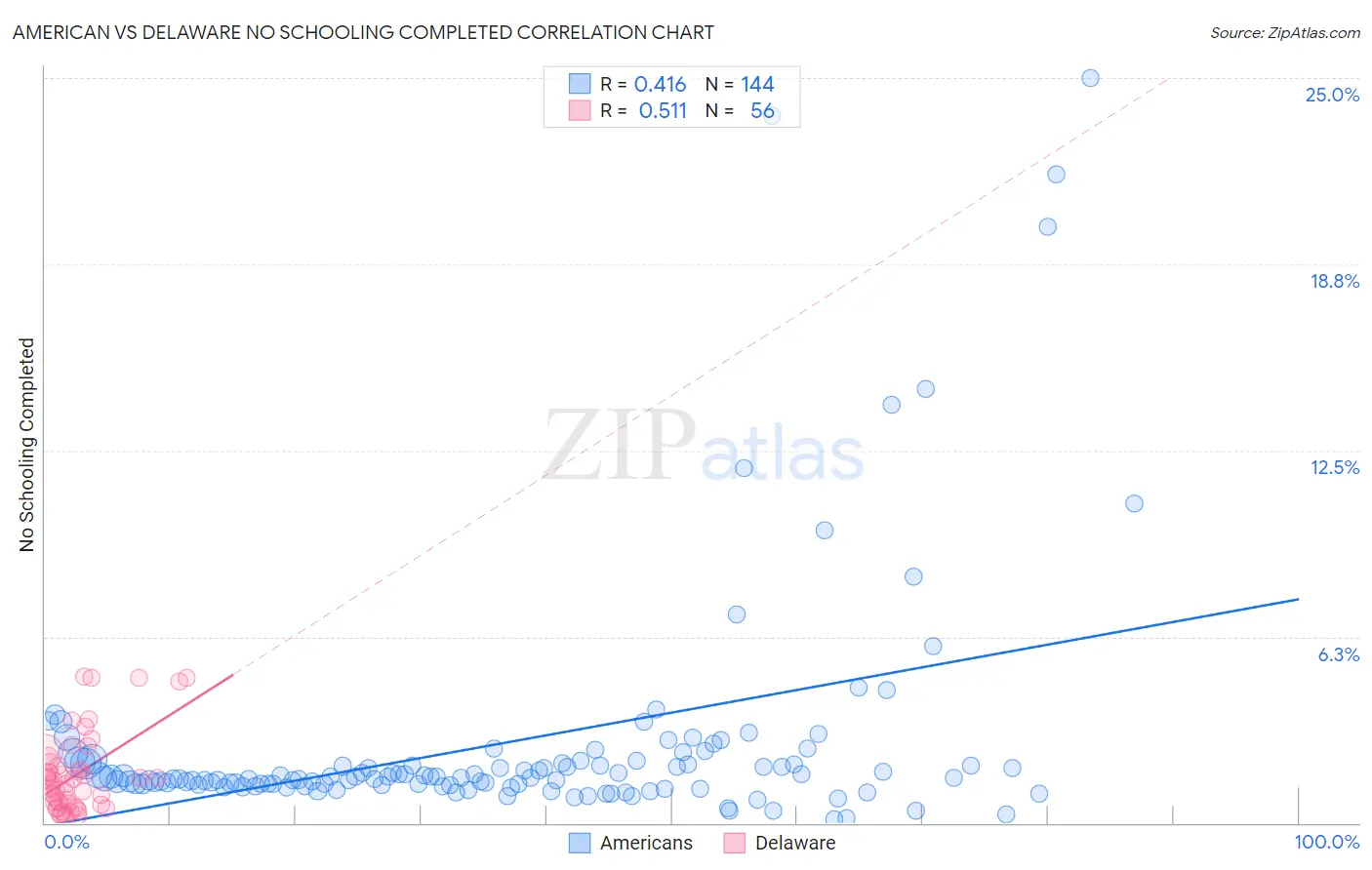 American vs Delaware No Schooling Completed Correlation Chart