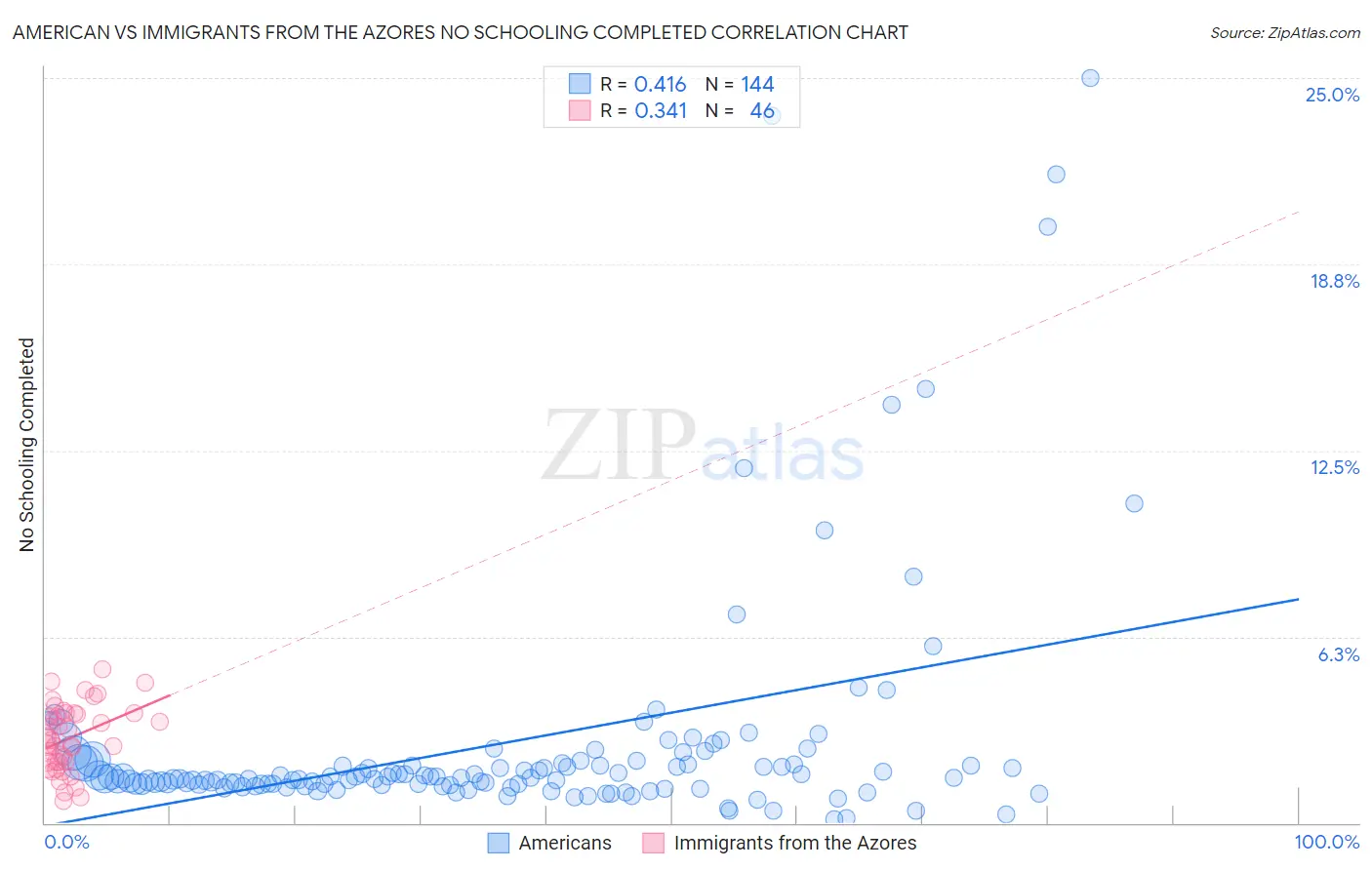 American vs Immigrants from the Azores No Schooling Completed Correlation Chart