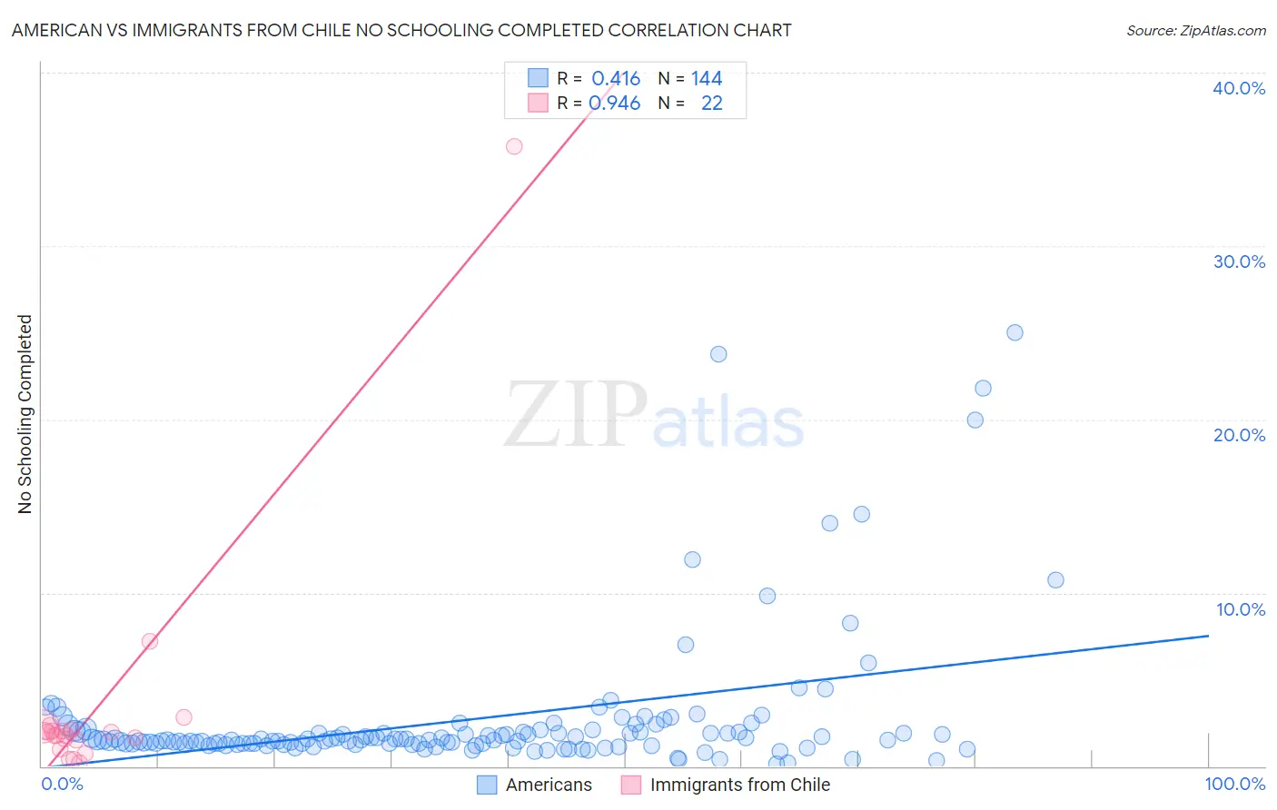 American vs Immigrants from Chile No Schooling Completed Correlation Chart