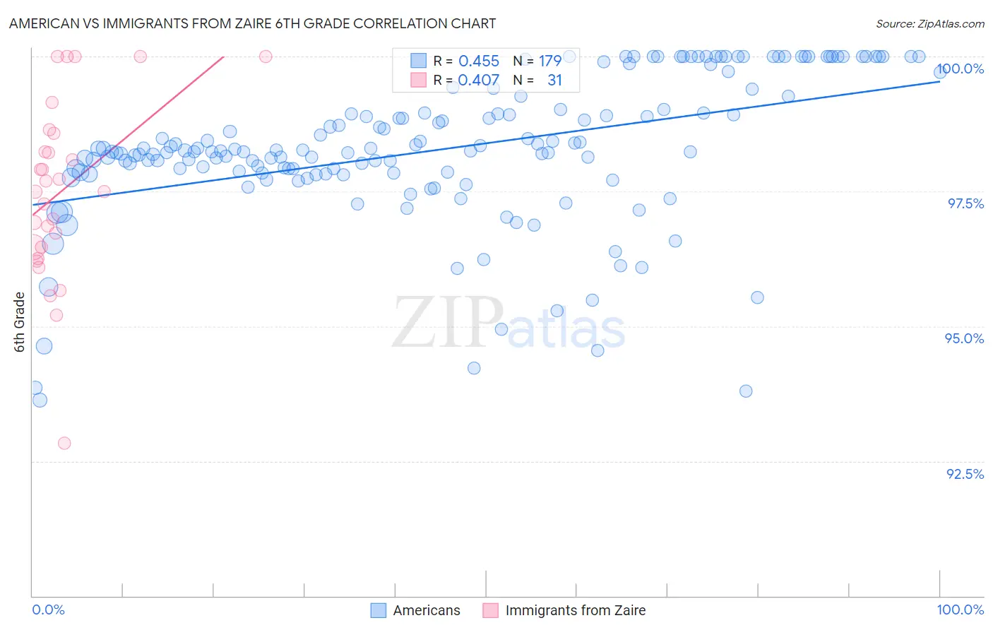 American vs Immigrants from Zaire 6th Grade Correlation Chart