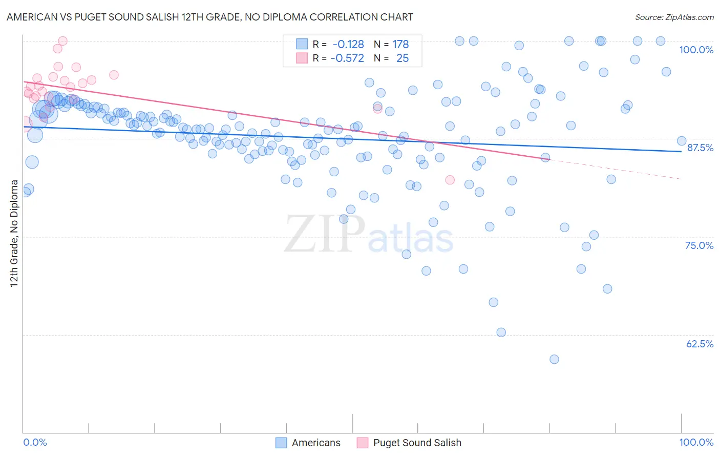 American vs Puget Sound Salish 12th Grade, No Diploma