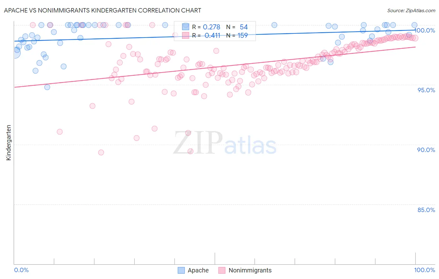 Apache vs Nonimmigrants Kindergarten Correlation Chart