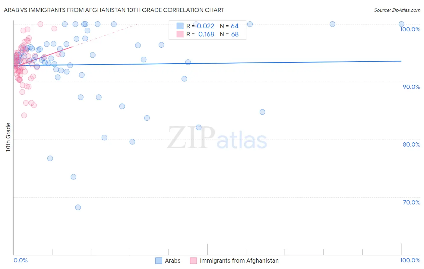Arab vs Immigrants from Afghanistan 10th Grade Correlation Chart