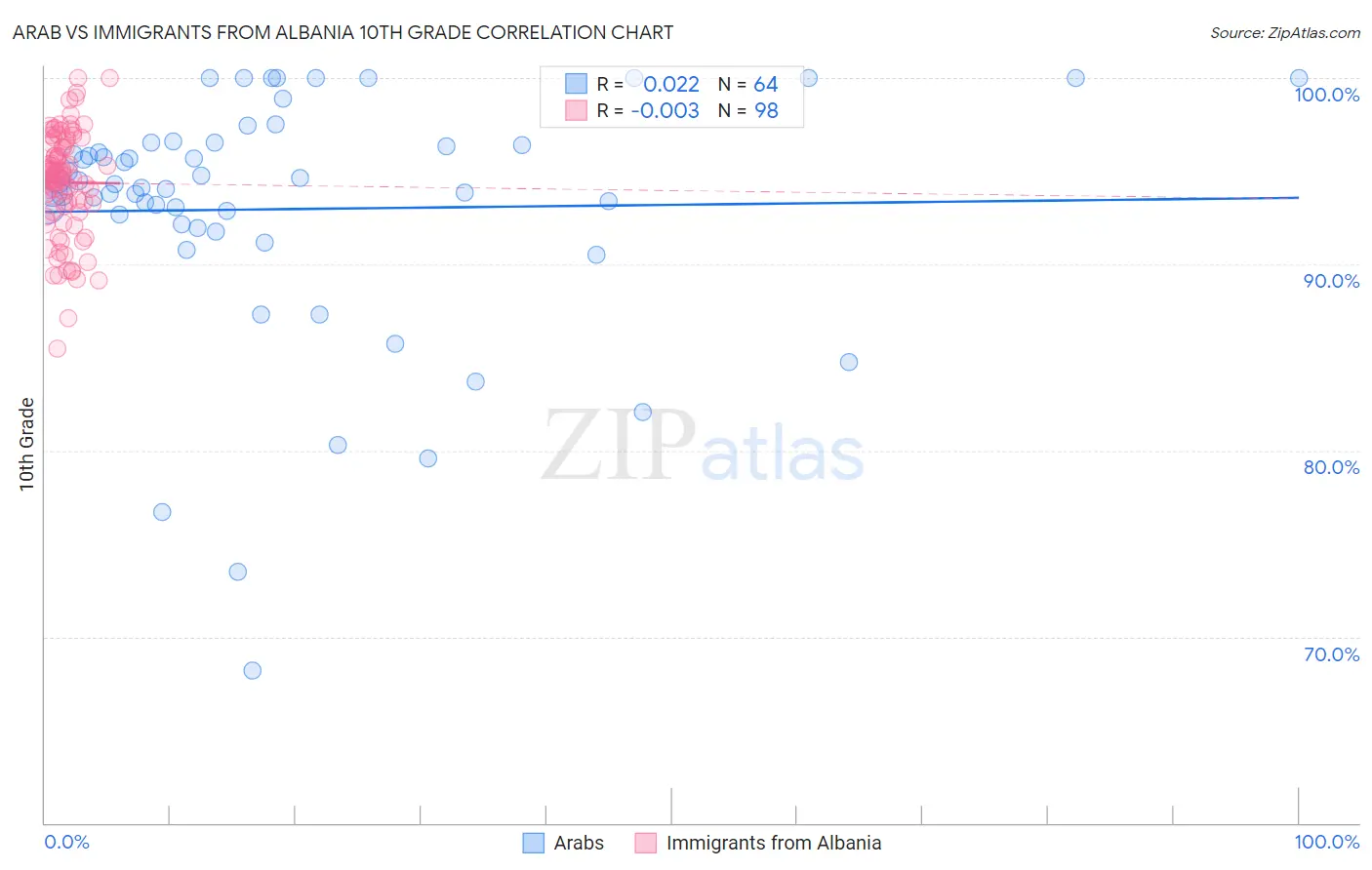 Arab vs Immigrants from Albania 10th Grade Correlation Chart