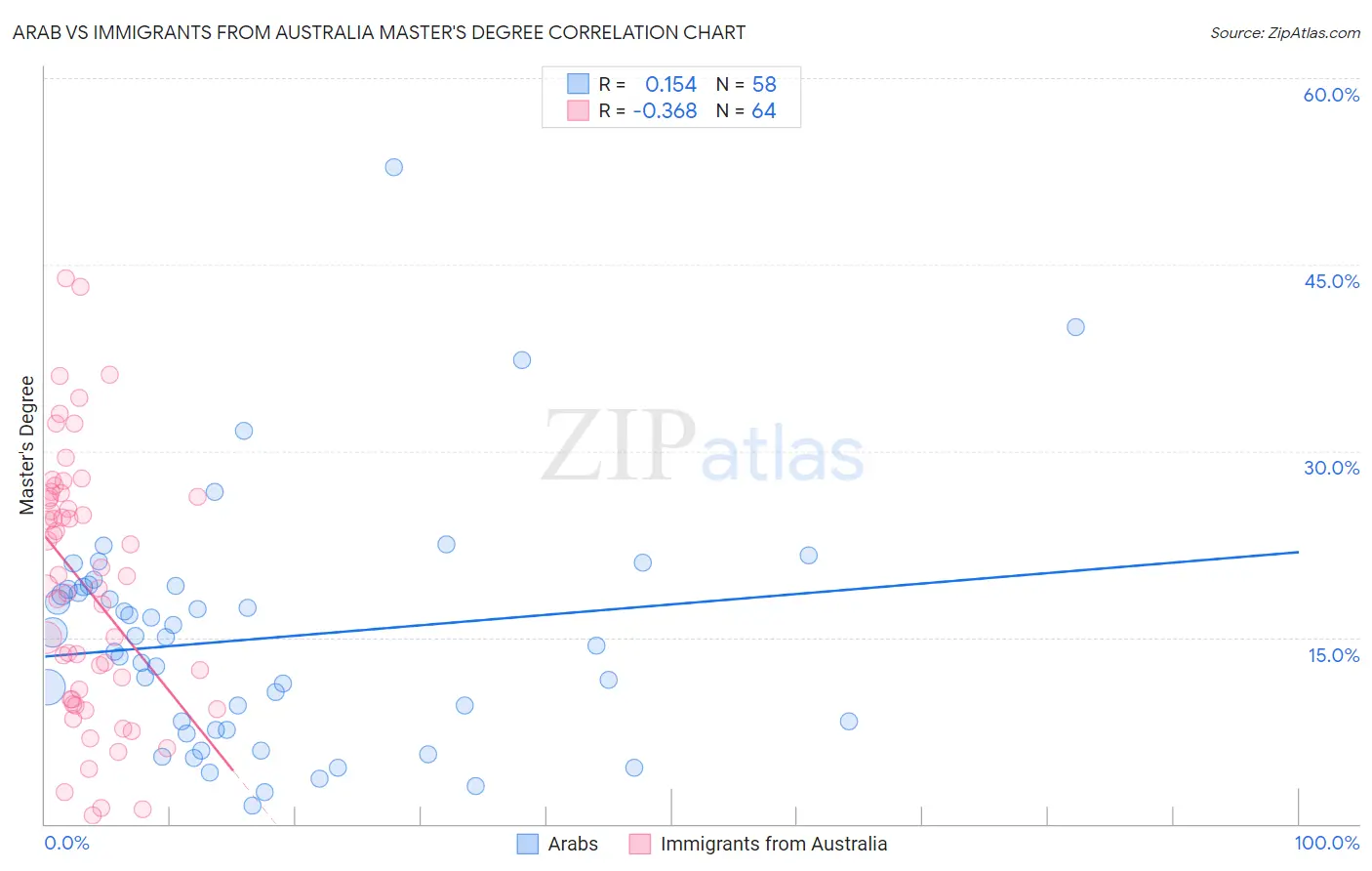 Arab vs Immigrants from Australia Master's Degree Correlation Chart