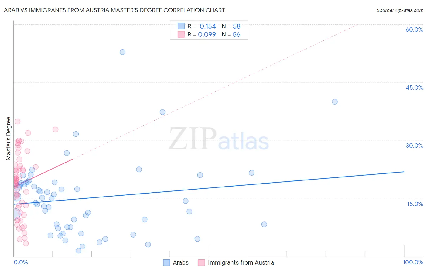 Arab vs Immigrants from Austria Master's Degree Correlation Chart