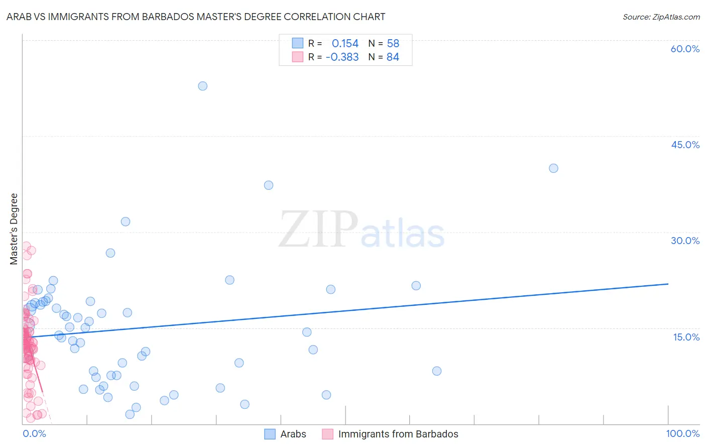 Arab vs Immigrants from Barbados Master's Degree Correlation Chart