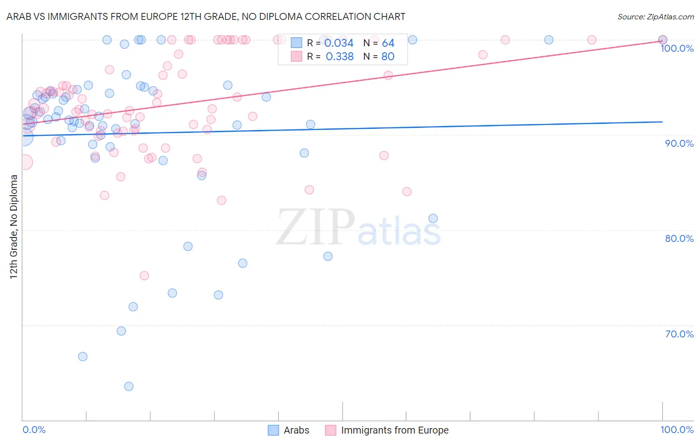Arab vs Immigrants from Europe 12th Grade, No Diploma Correlation Chart