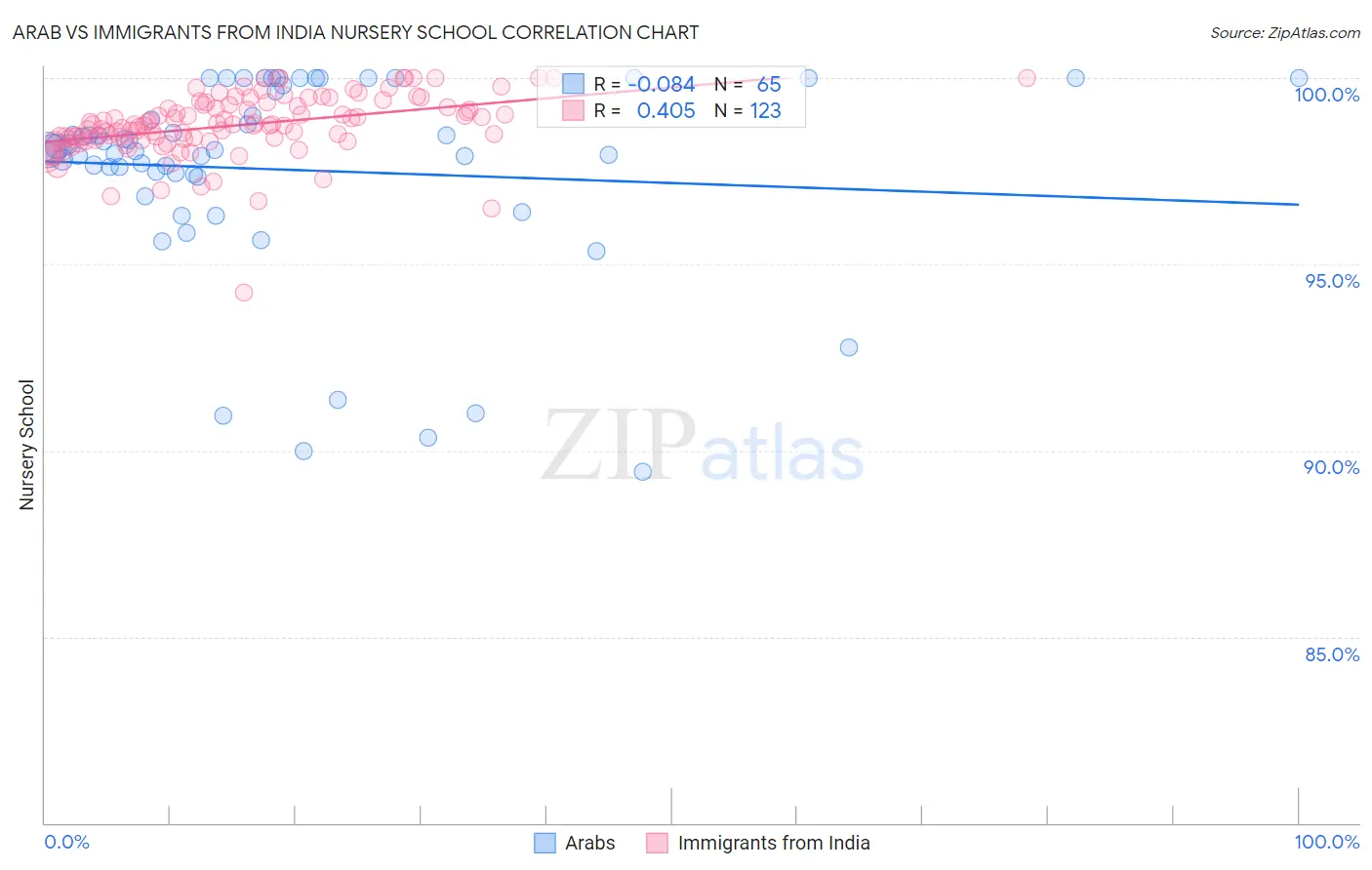 Arab vs Immigrants from India Nursery School Correlation Chart