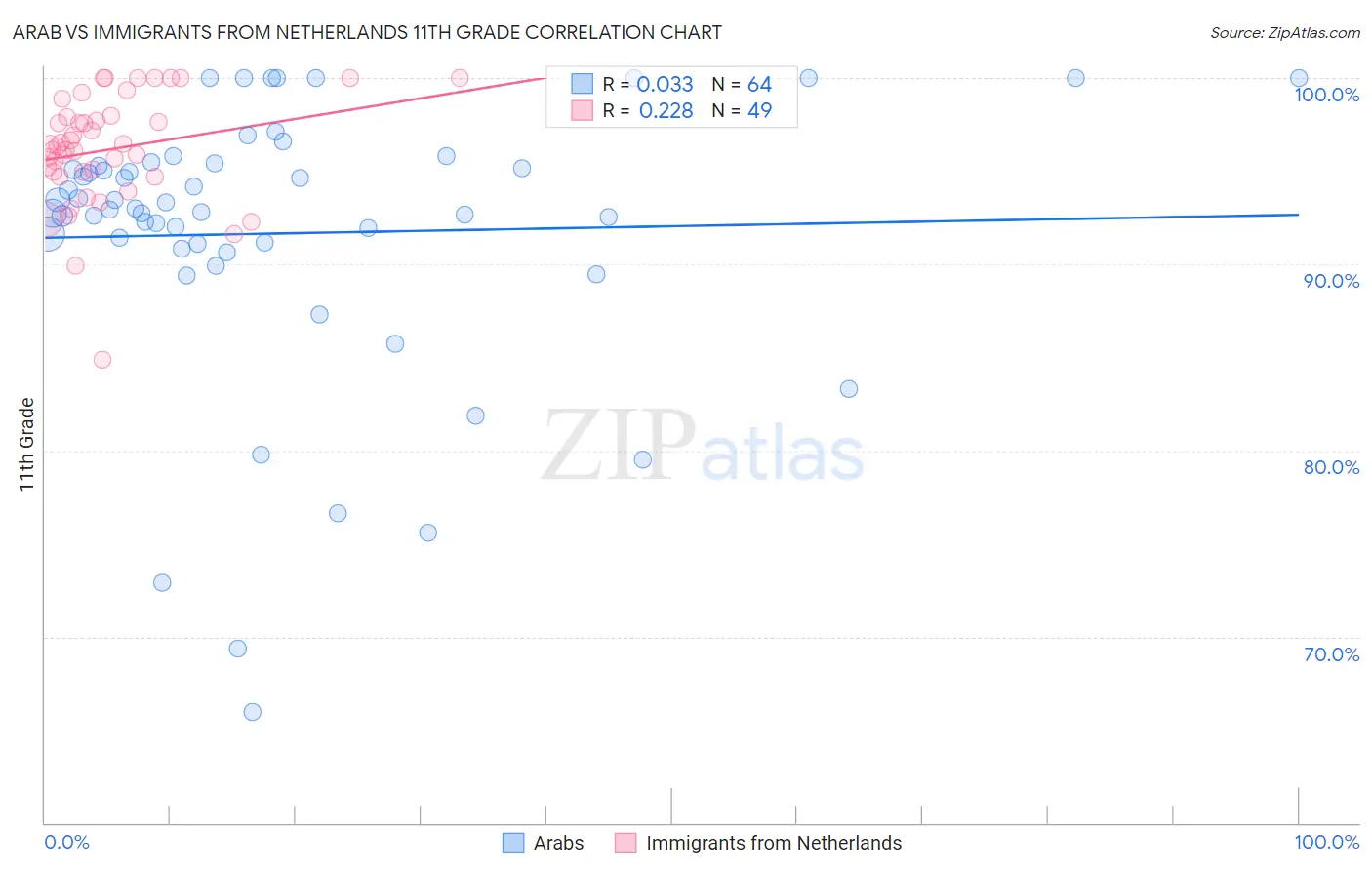 Arab vs Immigrants from Netherlands 11th Grade Correlation Chart