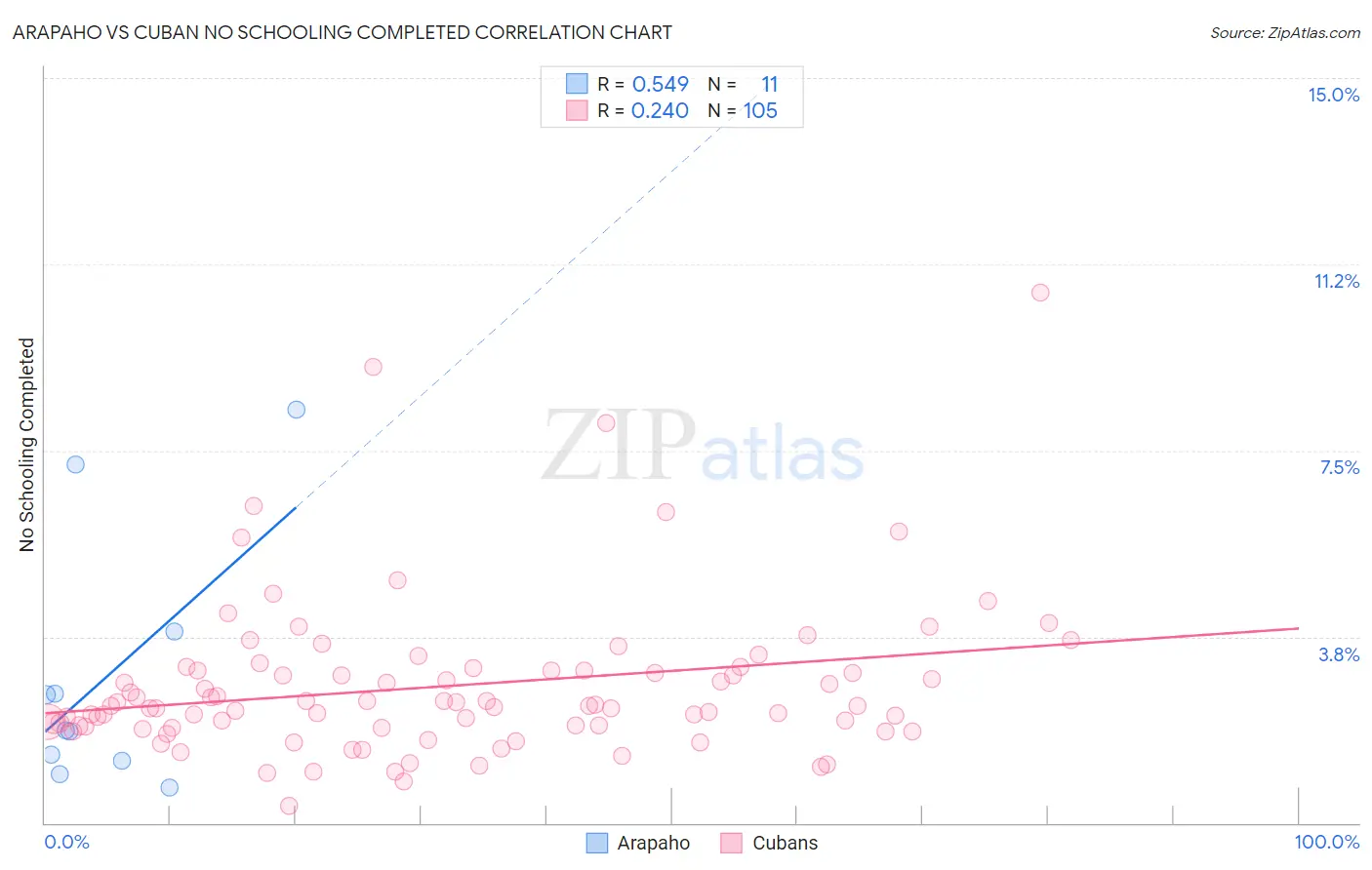 Arapaho vs Cuban No Schooling Completed Correlation Chart
