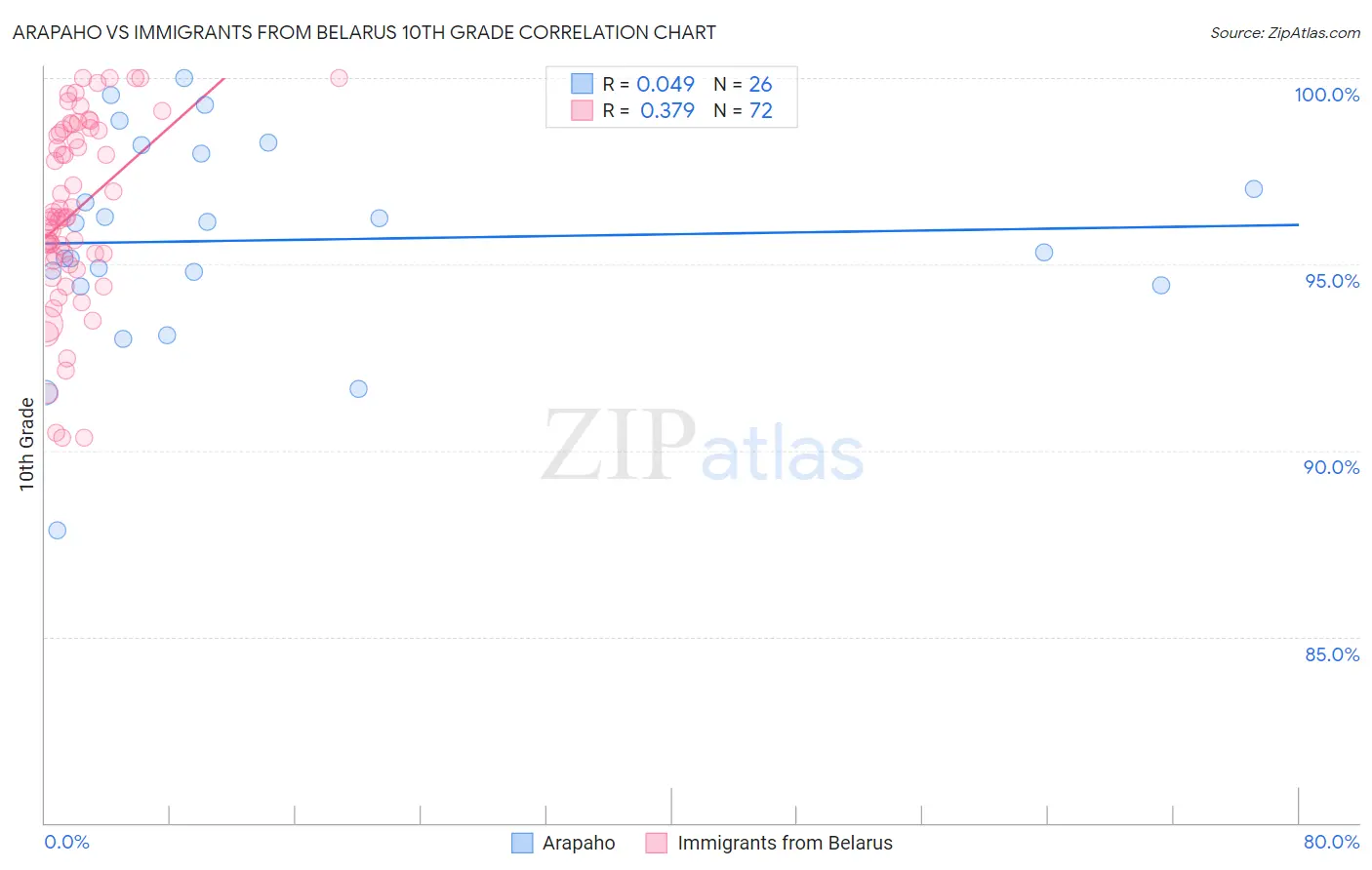 Arapaho vs Immigrants from Belarus 10th Grade Correlation Chart