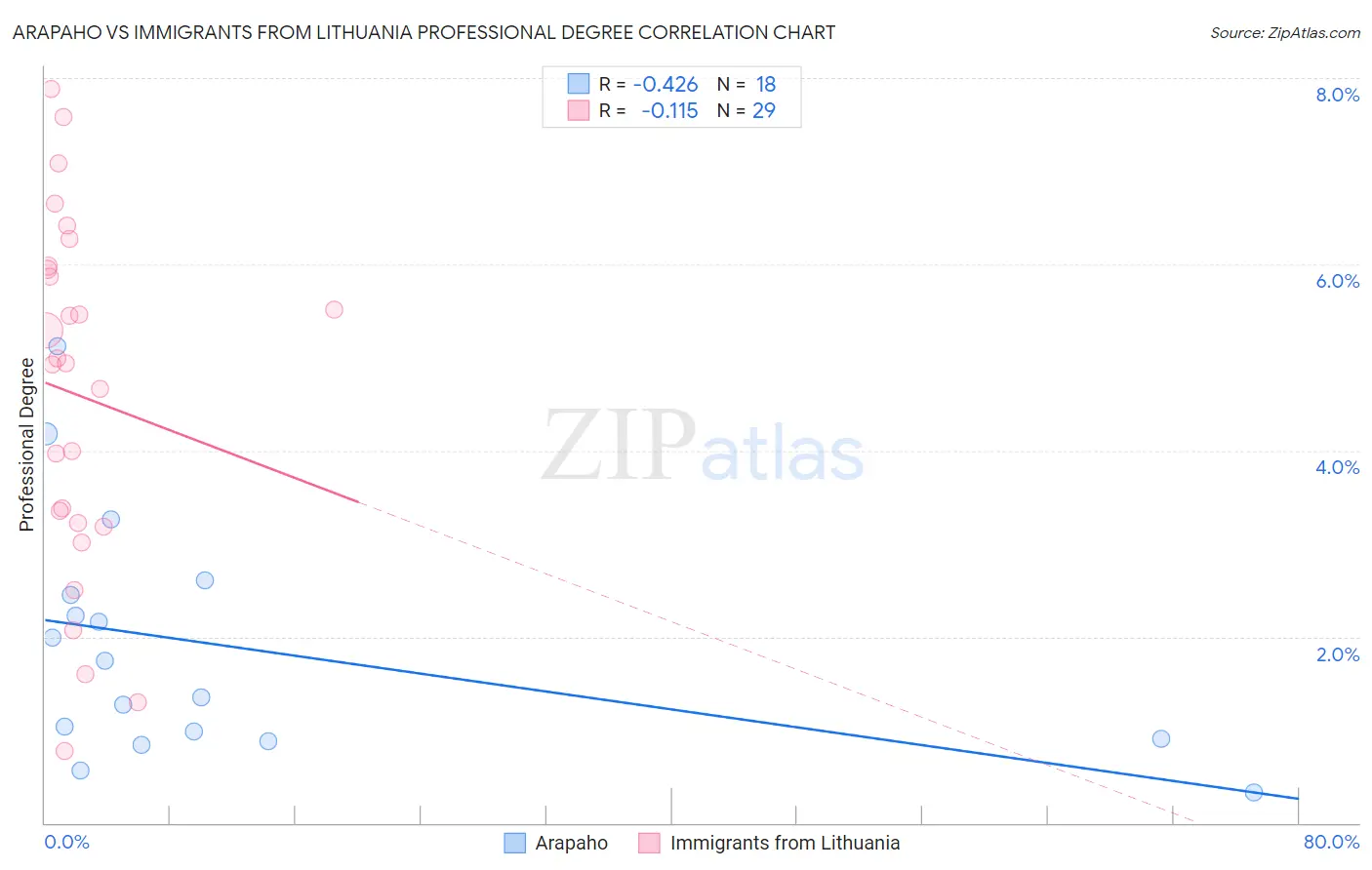 Arapaho vs Immigrants from Lithuania Professional Degree