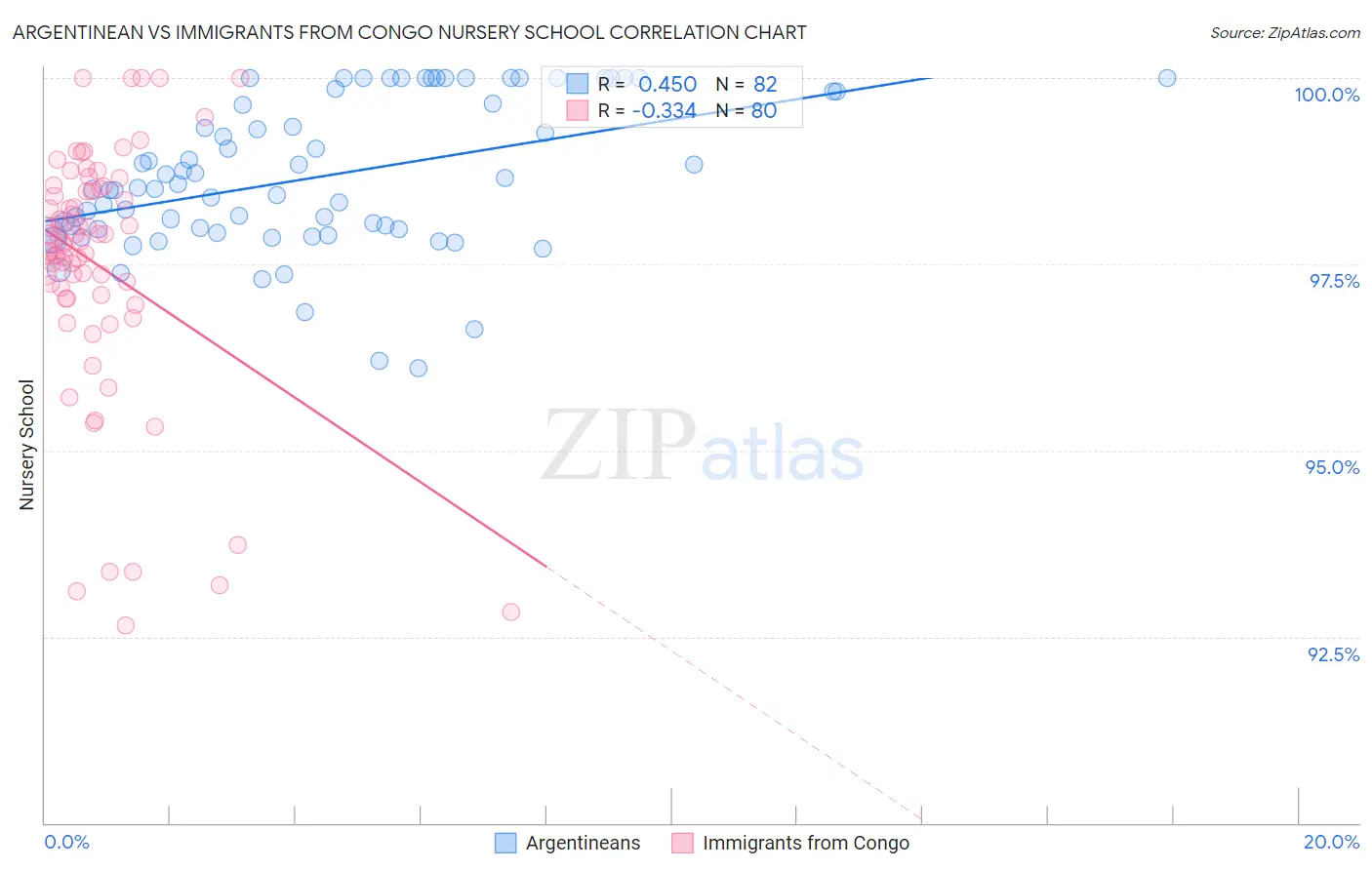 Argentinean vs Immigrants from Congo Nursery School Correlation Chart