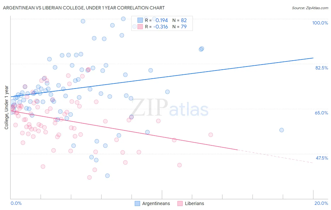 Argentinean vs Liberian College, Under 1 year Correlation Chart
