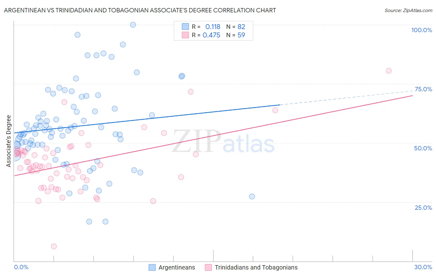 Argentinean vs Trinidadian and Tobagonian Associate's Degree Correlation Chart