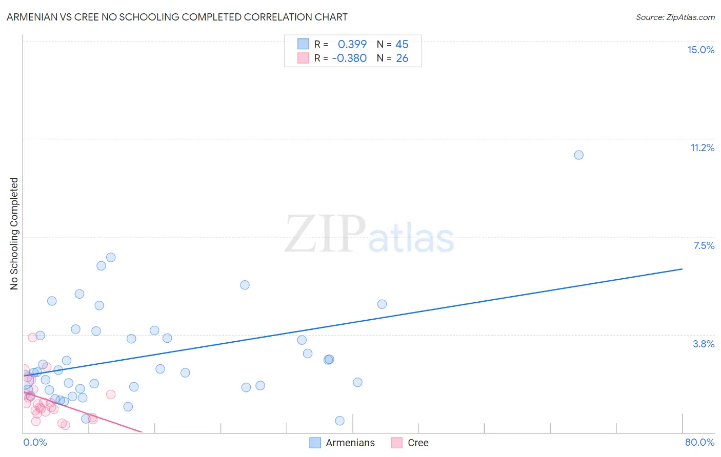 Armenian vs Cree No Schooling Completed Correlation Chart
