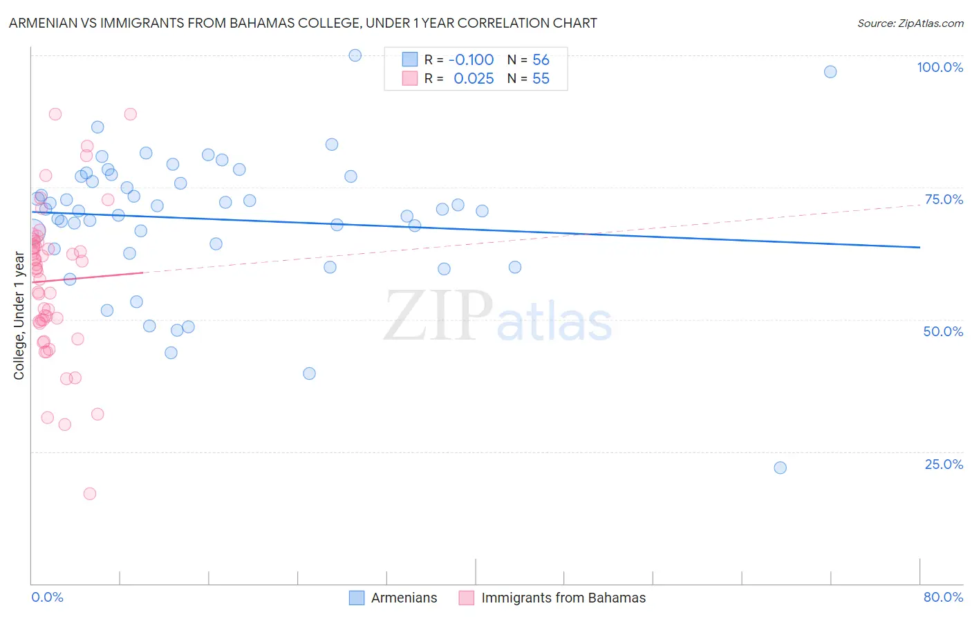 Armenian vs Immigrants from Bahamas College, Under 1 year Correlation Chart
