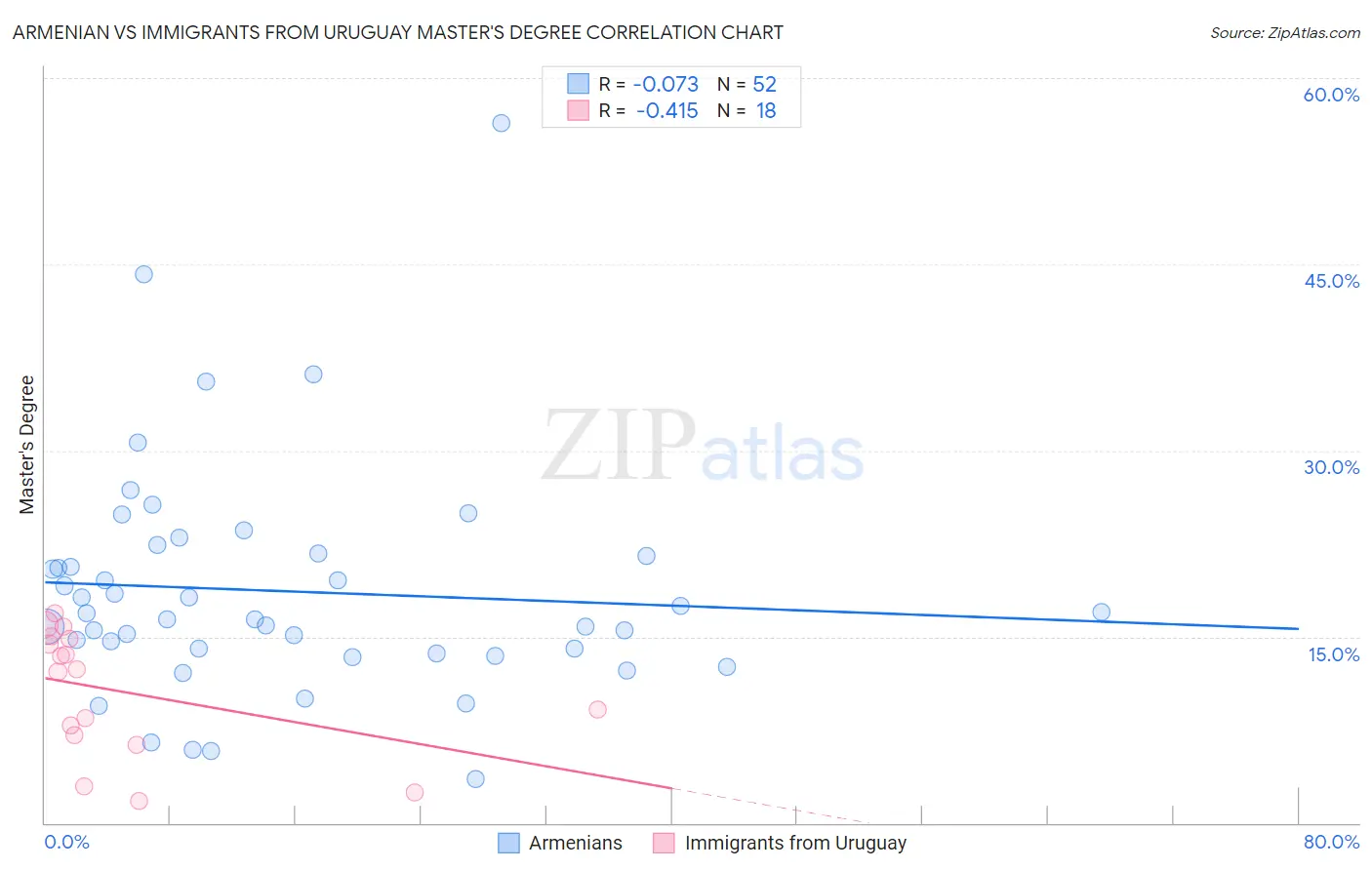 Armenian vs Immigrants from Uruguay Master's Degree Correlation Chart