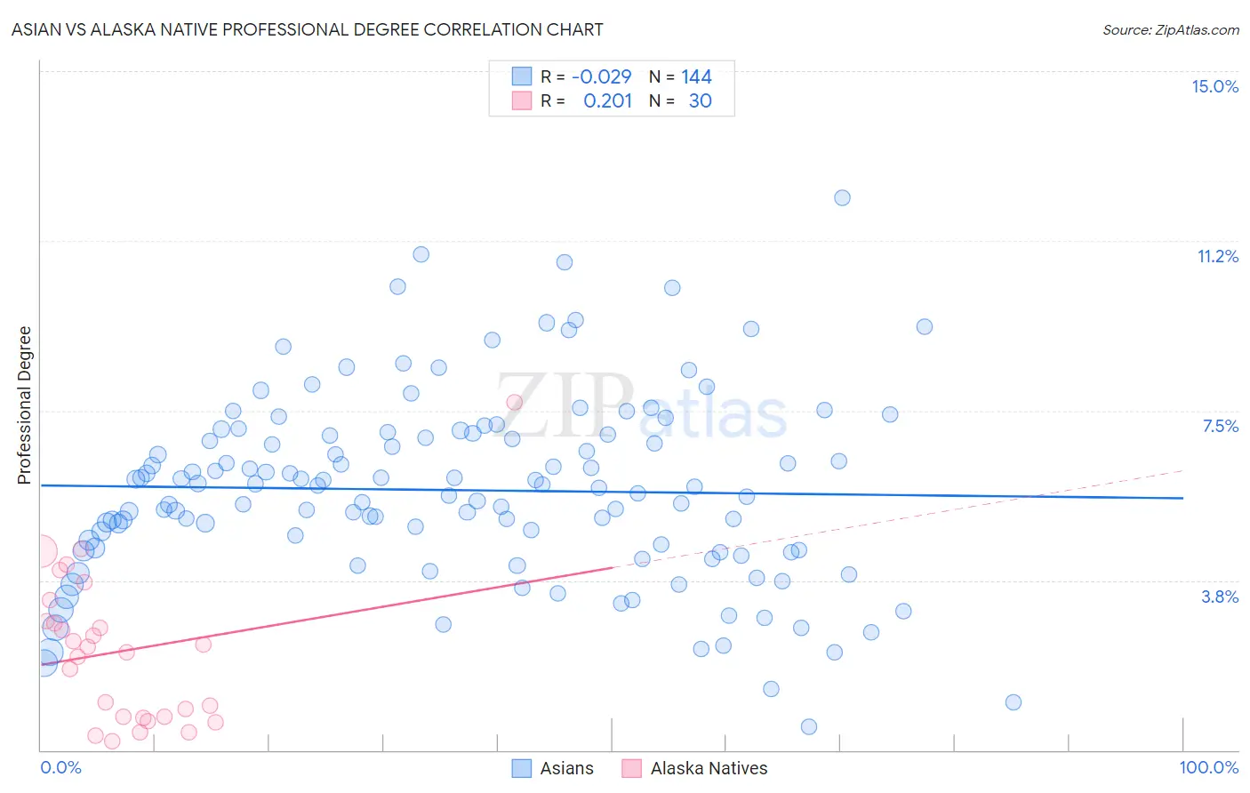 Asian vs Alaska Native Professional Degree Correlation Chart