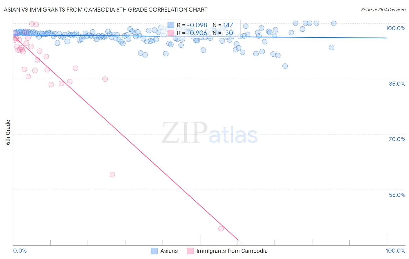 Asian vs Immigrants from Cambodia 6th Grade Correlation Chart